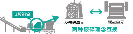 一種車身為8種機(jī)型通用,喂料單元互換系統(tǒng)、破碎單元互換系統(tǒng)和篩分單元互換系統(tǒng),只需再投資單機(jī)設(shè)備成本,短時(shí)間內(nèi),即可在同一車身上實(shí)現(xiàn)不同型號(hào)喂料單元、破碎單元和篩分單元互換系統(tǒng),整機(jī)各系統(tǒng)之間的匹配,適應(yīng)場(chǎng)合更廣泛,破碎功能更強(qiáng),客戶的消費(fèi)品得到較大體現(xiàn)。